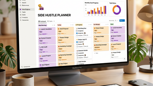 Notionで副業のタスク管理・収支管理・アイデア管理を一元化する方法。無料プランでできる実践的な使い方と、今日から10分で始める3ステップを解説。